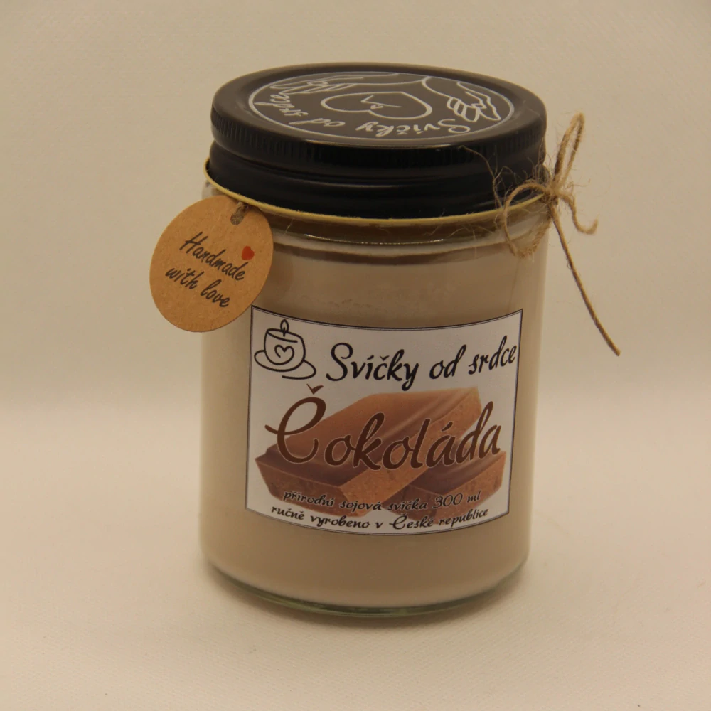 Ručně vyráběná svíčka z přírodního sojového vosku naplní váš prostor sladkou, hřejivou a bohatou vůní čokolády. Sojový vosk zajišťuje čisté a pomalé hoření, což umožňuje, aby aroma čokolády postupně naplnilo váš domov a vytvořilo tak útulné a příjemné prostředí. Vůně čokolády je dokonalým společníkem pro relaxaci, chvíle klidu nebo při vytvoření romantické atmosféry. Vyrobena ze 100% přírodního sójového vosku, který zaručuje čisté a dlouhé hoření, a opatřena bavlněným knotem pro ekologickou pohodu. Ideální volba pro chvíle klidu nebo jako voňavý dárek.