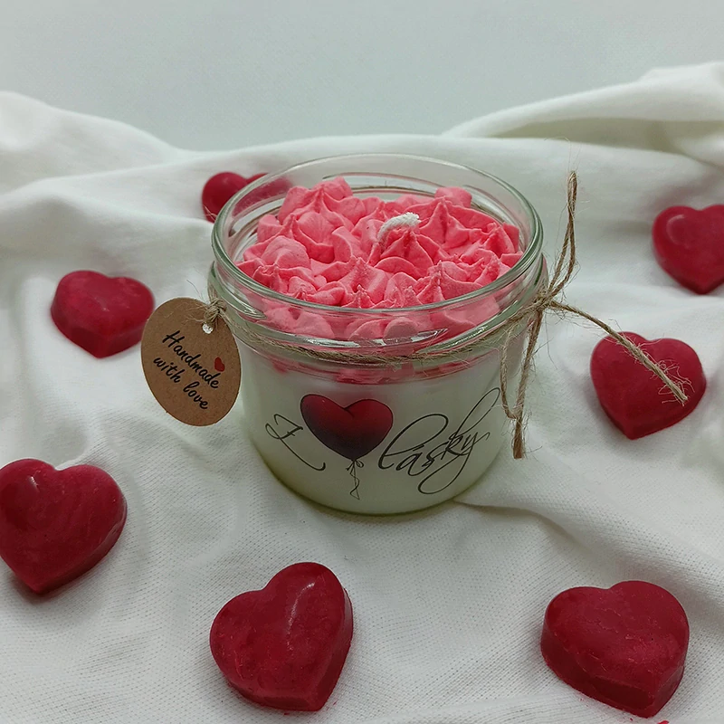 Hledáte ideální dárek pro svou polovičku? Naše ručně vyráběná sójová svíčka by mohly být zajímavým doplňkem pro ty, kdo chtějí letos Valentýna oslavit s něčím osobním a originálním! Objevte kouzlo jednoduchého designu s láskyplným dotekem. Svíčka je zdobená jemným krémem ze sójového vosku, který přinese útulnou atmosféru do každého domova.
