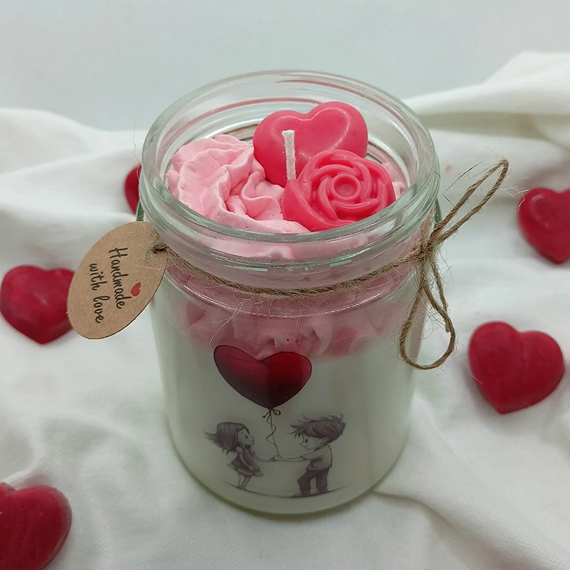 Hledáte ideální dárek pro svou polovičku? Naše ručně vyráběná sójová svíčka by mohly být zajímavým doplňkem pro ty, kdo chtějí letos Valentýna oslavit s něčím osobním a originálním! Objevte kouzlo jednoduchého designu s láskyplným dotekem. Svíčka je zdobená jemným krémem ze sójového vosku, nádhernými srdíčky a květinami, které přinesou útulnou atmosféru do každého domova.
